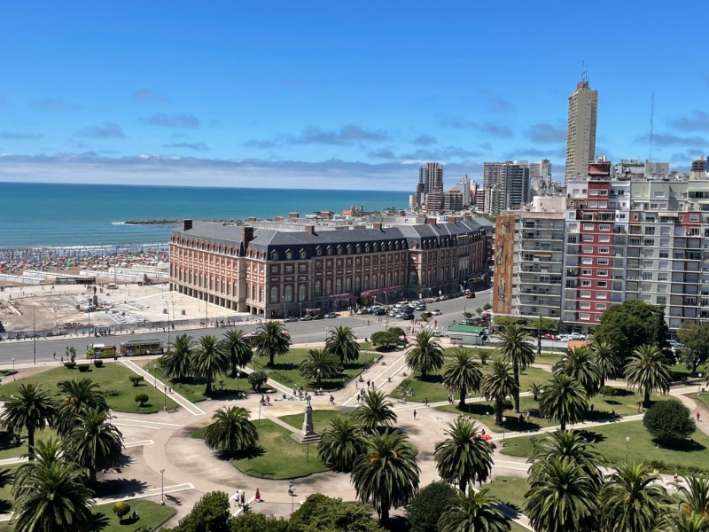 TEMPORADA 2026. Departamento PISO 12, mono ambiente vista plena al mar, frente a la Plaza Colón para 2 personas (+ un niño de hasta 12 años en camita plegable, sin cargo). Cama somier de 2 plazas, cable y wifi incluidos, TV plasma. Heladera con freezer, microondas, pava y tostadora eléctrica, ventilador. Edificio con seguridad las 24hs. Servicio de área protegida. Grupo electrógeno.