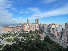 INVIERNO 2026. Departamento PISO 13, CON CALEFACCIÓN. mono ambiente vista plena al mar, frente a la Plaza Colón. a 4 cuadras de la peatonal San Martín y 7 cuadras del Paseo Aldrey. Para 2 personas (+ un niño de hasta 12 años en camita plegable, sin cargo). Cama somier de 2 plazas, cable y wifi incluidos, TV plasma. Heladera con freezer, microondas, pava y tostadora eléctrica, ventilador. Edificio con seguridad las 24hs. Servicio de área protegida. Grupo electrógeno.